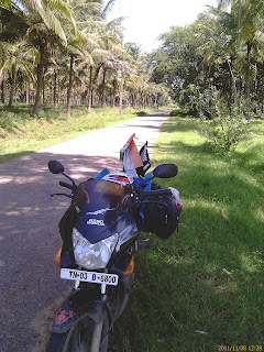 Bike had a puncher in the morning so ripped the front wheel off and the hotel guy ran me down to the shop to get it repaired, turned out to be a little barb made a hole, R50 for the fix and my first real experience of people who don't really know what they are doing, doing the work for you. I was unable to put the wheel back on 2 locals HAD to do it for me, I've read a bit about this in India so you have to keep a close eye on them or they will break things when trying to help. Also is the first puncher on my own bike of the trip, there was the rental in Indo that got a flat.
